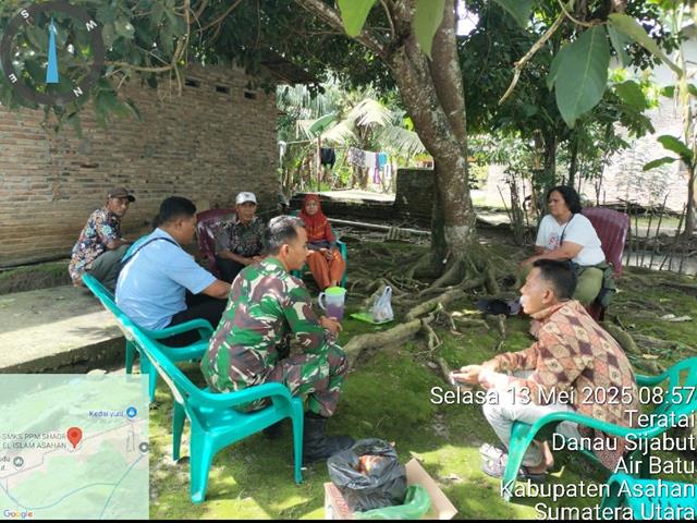 Dalam kesempatan ini seperti yang dilakukan oleh Personel Bintara Pembina Desa (Babinsa) Koramil 12/Air Batu jajaran Kodim 0208/Asahan Serda Ronny Hutabri turun kewilayah binaan untuk melaksanakan kegiatan Komunikais Sosial (Komsos) bersama dengan warga masyarakat binaan, giat Komsos dengan Warga masyarakat diwilayah binaan, adapun tujuan giat tersebut bertujuan untuk membangun hubungan yang lebih baik lagi antara Babinsa dan masyarakat, bersama dengan Bapak Rediwin, Bapak Sarkowi, Bapak Ponimin, Bapak Sutadi, Ibu Meri dan Ibu Rosnidar, kegiatan tersebut yang dilaksanakan bertempat di Dusun VII Desa Danau Sijabut Kecamatan Air Batu Kabupaten Asahan, Rabu (14/05/2025).