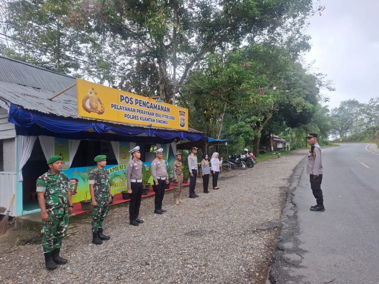 Pada kesempatan ini seperti halnya yang dilakukan oleh Personel Bintara Pembina Desa (Babinsa) Koramil 08/KM Kopda M.H Damanik Dan Pratu Agil turut serta melaksanakan kegiatan di Pos Pelayanan Lebaran di desa kasang kecamatan kuantan mudik kabupaten kuantan singingi.Adapun personil yang hadir mengikuti Pos pelayanan idul fitri tahun 2026 dalam rangka Arus mudik lebaran diantaranya Personel TNI AD, Polri, Satpol, Dishub, Dan Tim kesehatan.