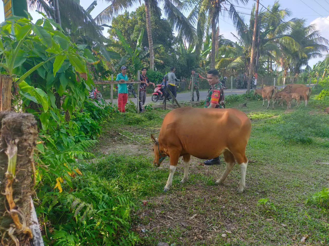 Sebagai langkah antisipasi penyebaran wabah Penyakit Mulut dan Kuku (PMK) pada hewan ternak Anggota Koramil 02/Kuantan Tengah Serda Herry Farwady terus melaksanakan pemantauan, Pengecekan Kesehatan hewan ternak, dan sosialisasi terhadap pemilik ternak warga di Desa Koto Taluk Kec. Kuantan Tengah Kab. Kuansing, Rabu (09/07/2025).