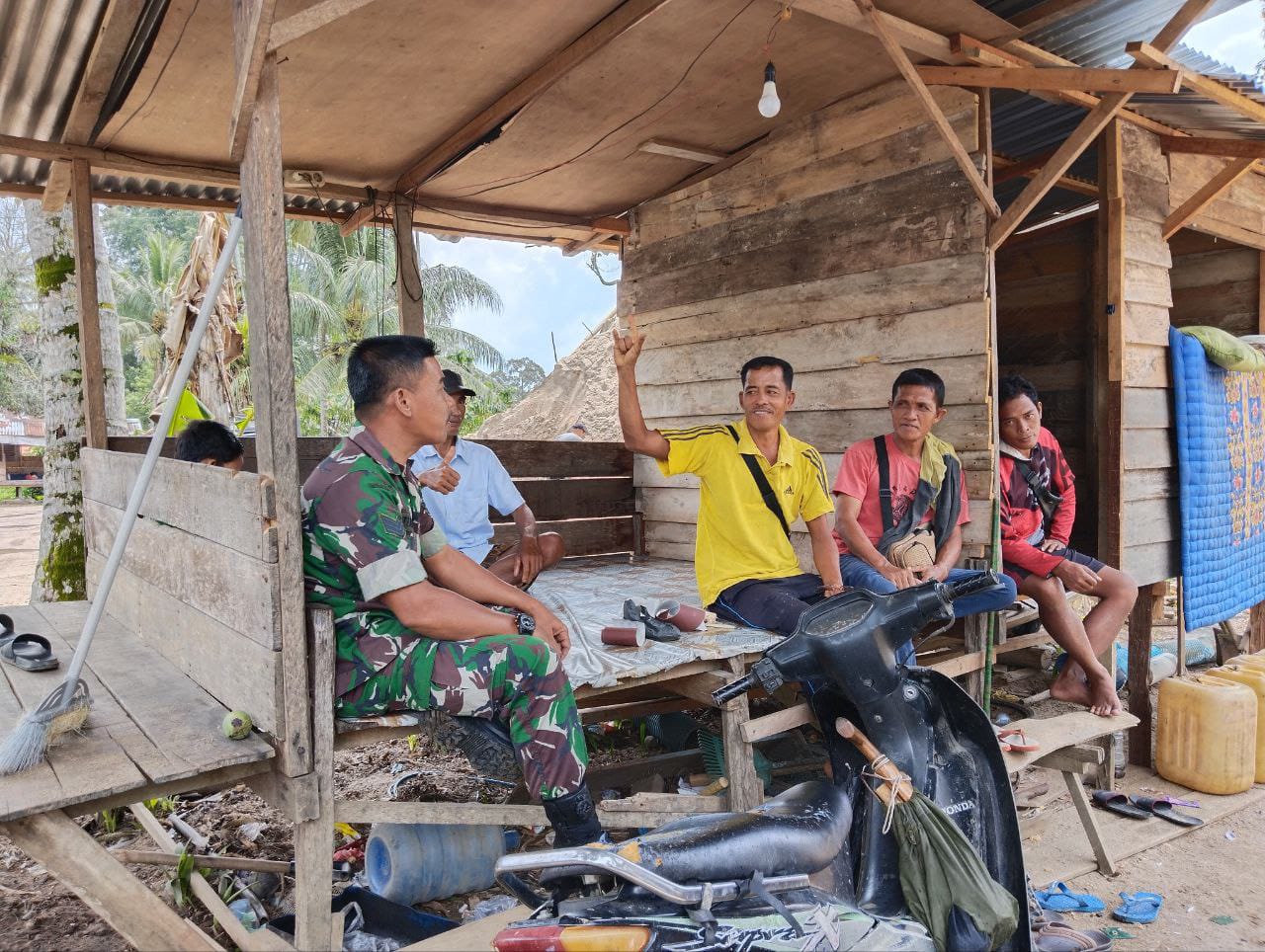 Seperti yang dilakukan oleh Babinsa Koramil 02/Kuantan Tengah Serma Teni Maldes menjalin keakraban serta kebersamaan yang baik dengan warga binaan yang berada di Desa Geringging Jaya Kec. Sentajo Raya Kab. Kuansing, Kamis (02/10/2025).