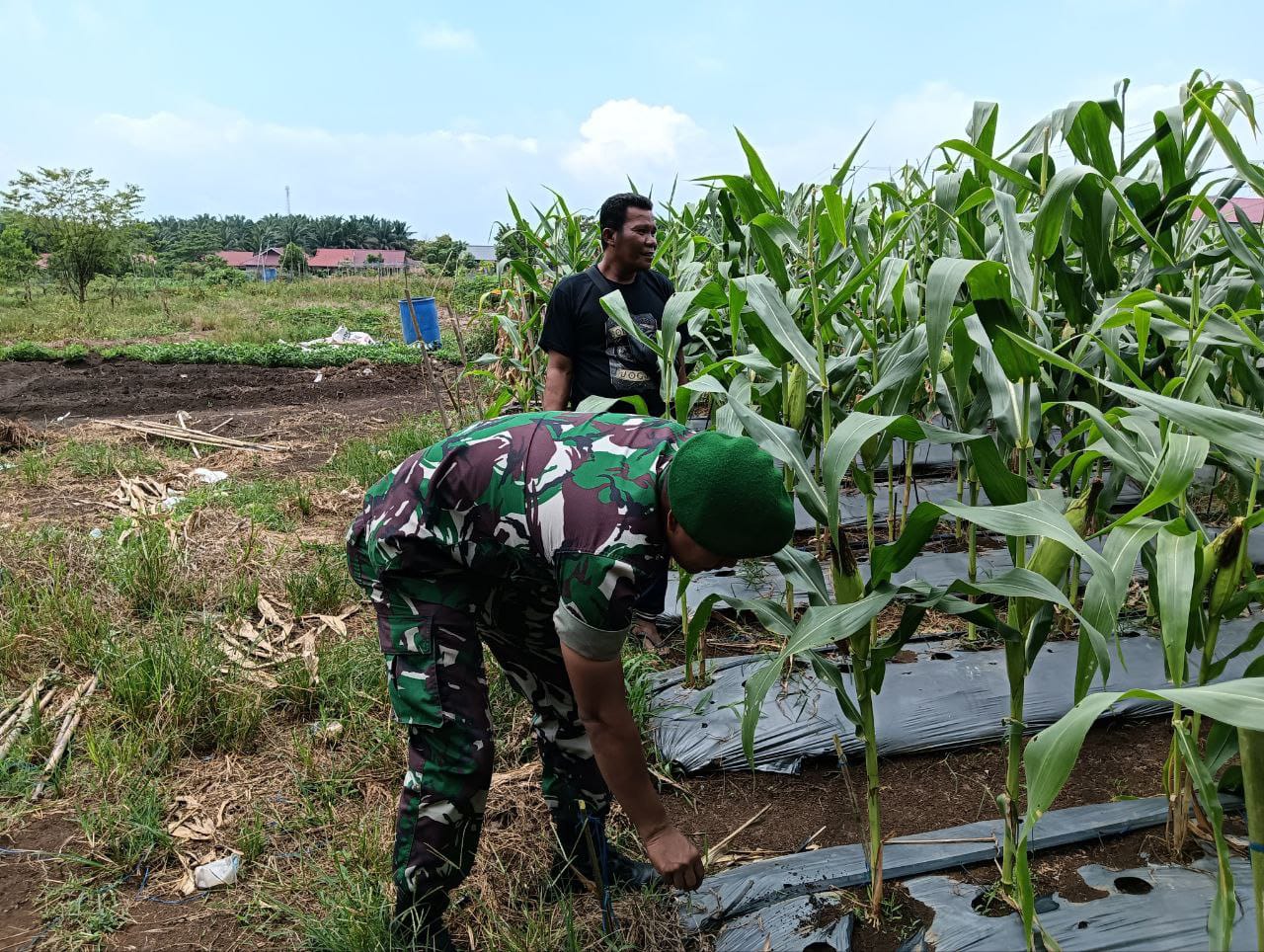 Teluk Kuantan – Wujud nyata Kemanunggalan TNI dengan rakyat dalam meningkatkan ketahanan Pangan wilayah dilakukan oleh Babinsa Koramil 02/Kuantan Tengah Kodim 0302/Inhu Serda Parman Edi yang turun langsung dalam melakukan pendampingan dan pembinaan kepada petani pada proses perawatan tanaman jagung yang terletak di Desa Jalur Patah Kec. Kuantan Tengah Kab. Kuansing, Kamis (08/01/2026).