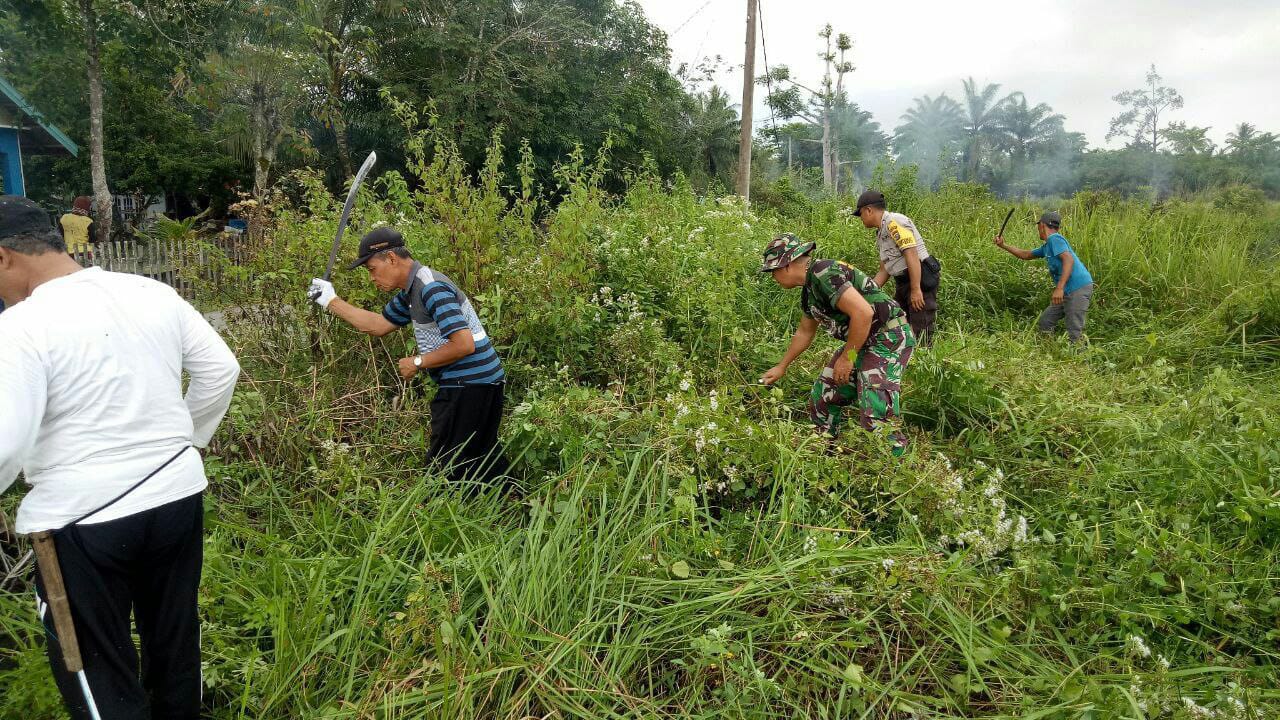 Babinsa Koramil 02/KT Goro Bersihkan Bahu Jalan Bersama Warga