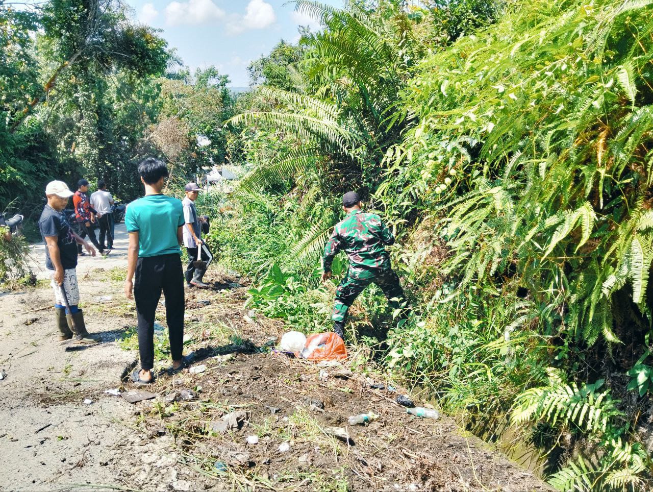 Babinsa Koramil 02/KT Goro Bersihkan Bahu Jalan Bersama Warga