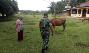Babinsa Serka Despi Herdison mengatakan bahwa, sapi ternak warga harus di cek rutin untuk mencegah penyakit mulut dan kuku supaya tidak menular ke ternak yang lainnya.”ungkapnya.
