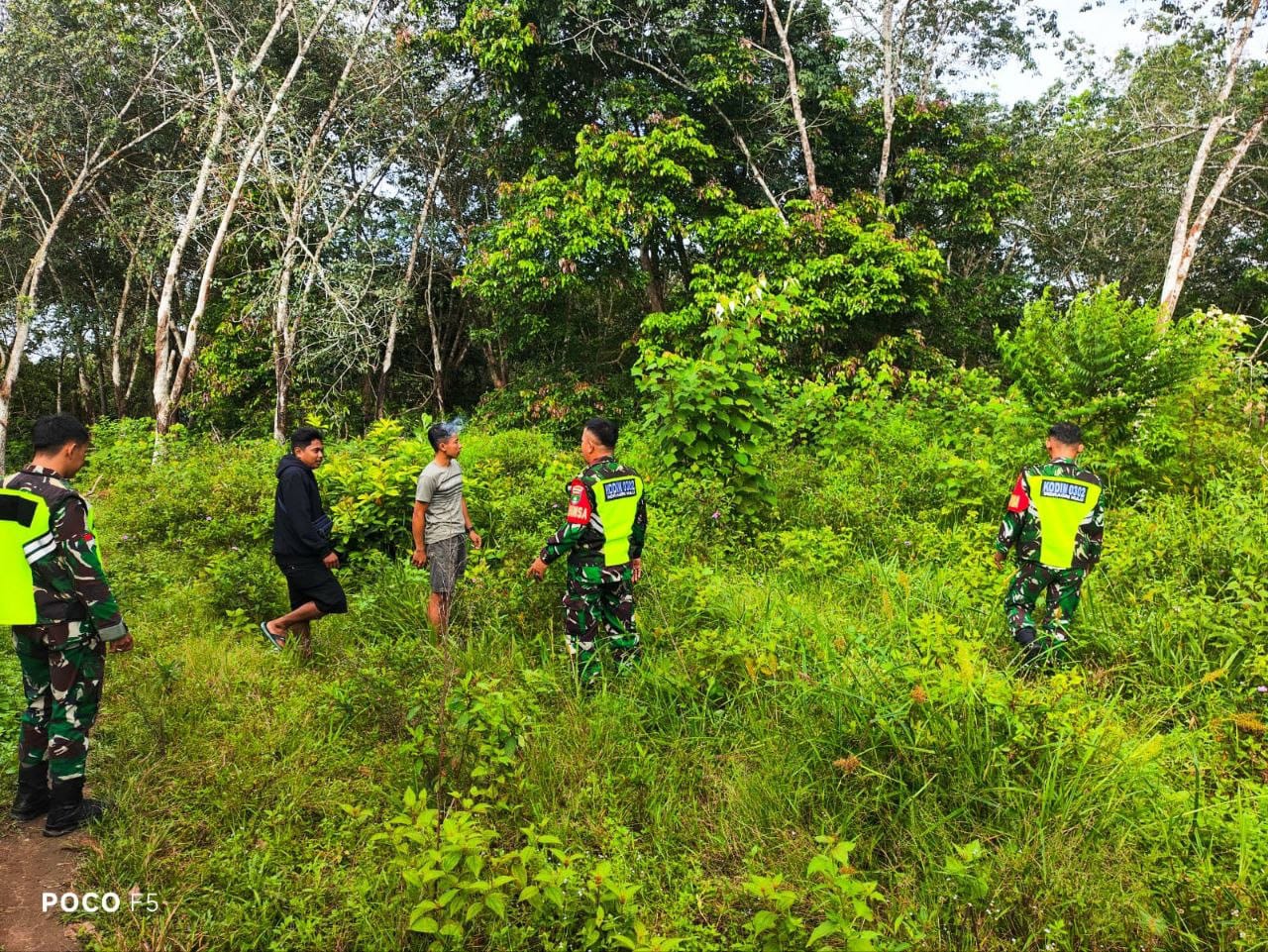 Babinsa Koramil 02/Kuantan Tengah Kodim 0302/Inhu Serka Despi Herdison bersama dengan warga masyarakat menyisir sekitar daerah lahan masyarakat maupun semak belukar di daerah wilayah binaannya.