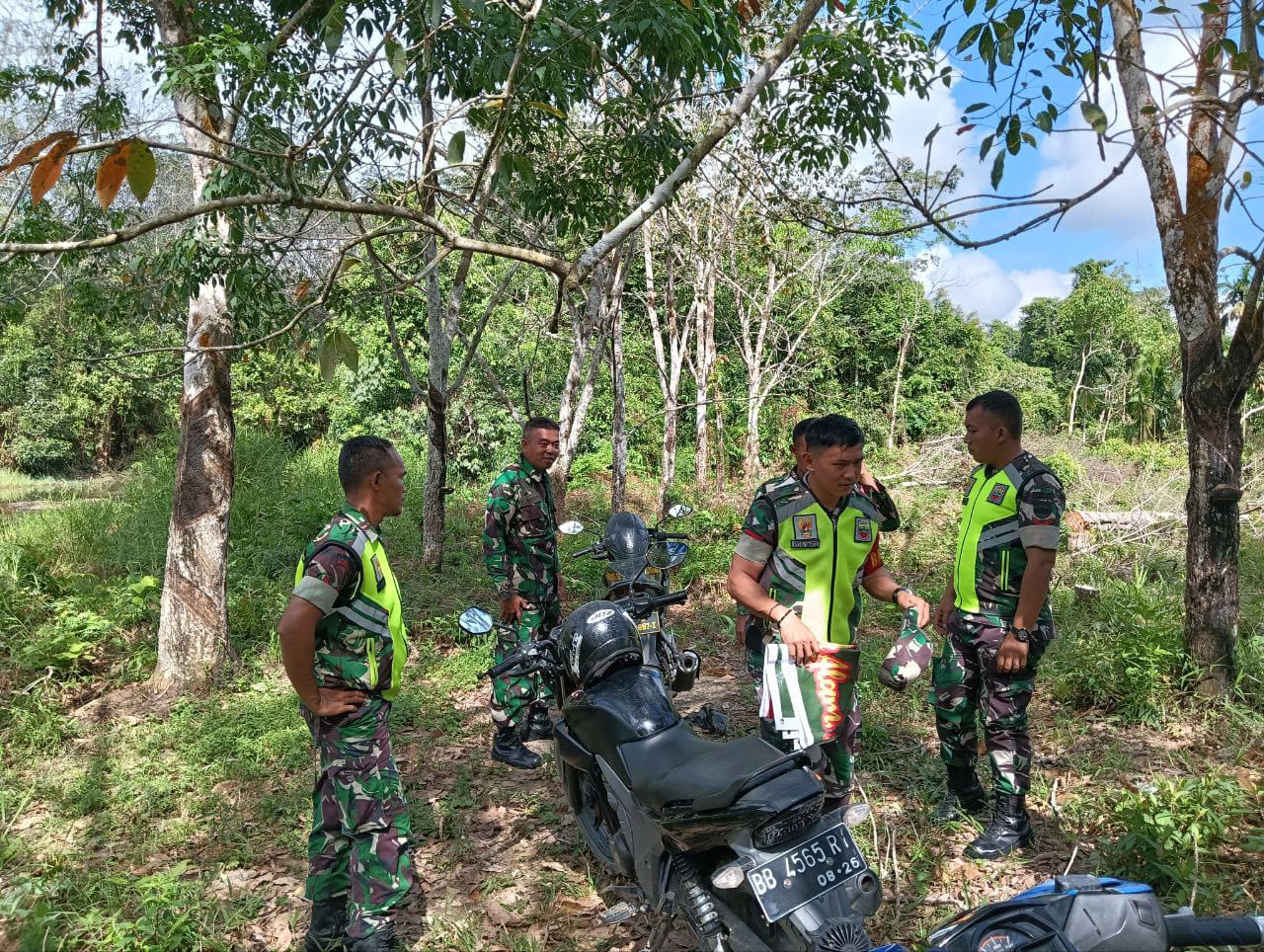 Babinsa Koramil 02/Kuantan Tengah Kodim 0302/Inhu Serda Parman Edi bersama dengan warga masyarakat menyisir sekitar daerah lahan masyarakat maupun semak belukar di daerah wilayah binaannya.