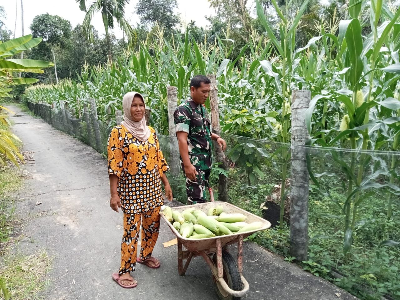 Memanen jagung hasil kerja sama Babinsa dan kelompok tani ini merupakan bentuk dukungan terhadap program ketahanan pangan yang digalakkan pemerintah.