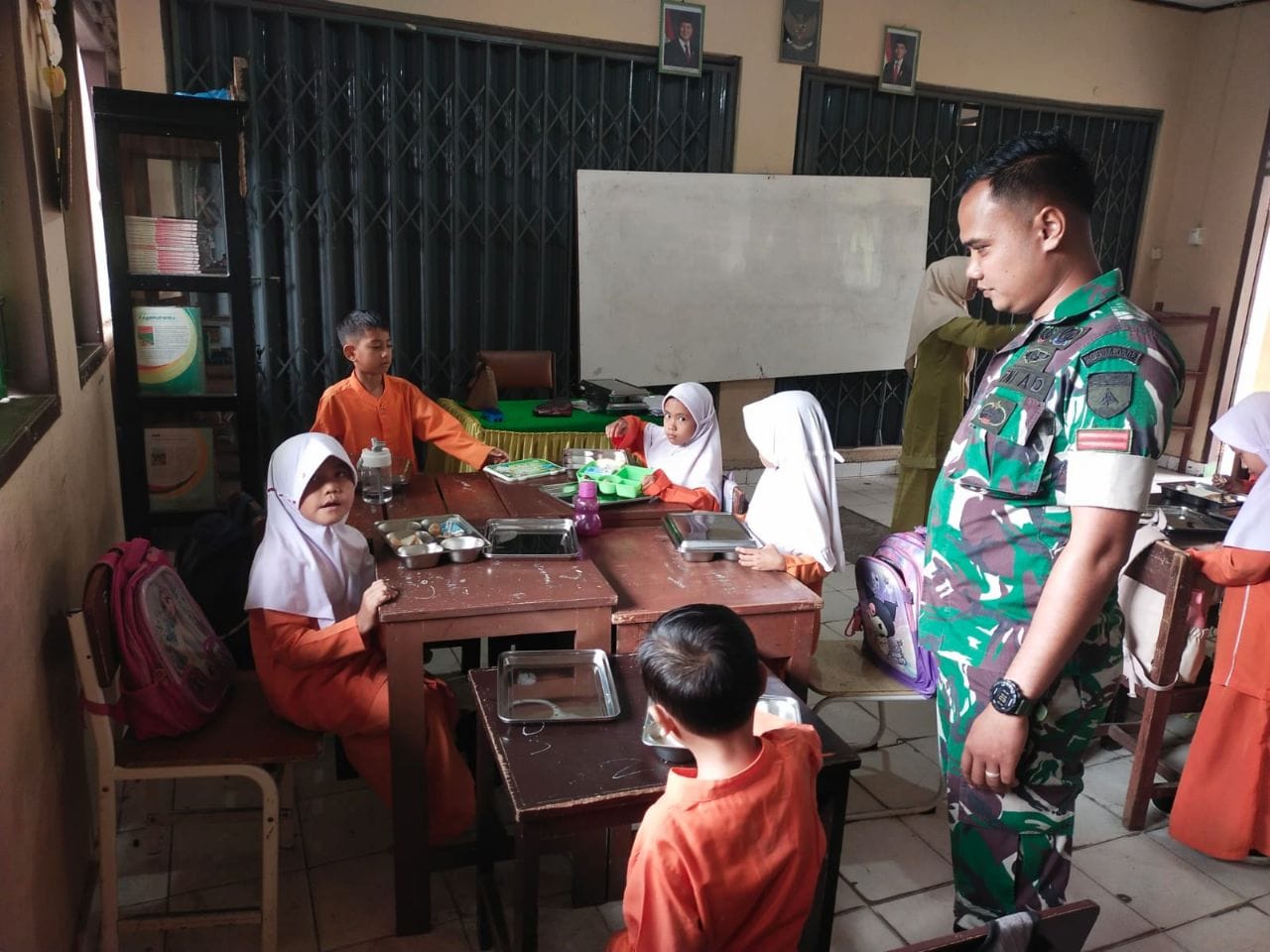 Babinsa Koramil 08/KM Dampingi Pelaksanaan Makan Bergizi Gratis Di Sekolah