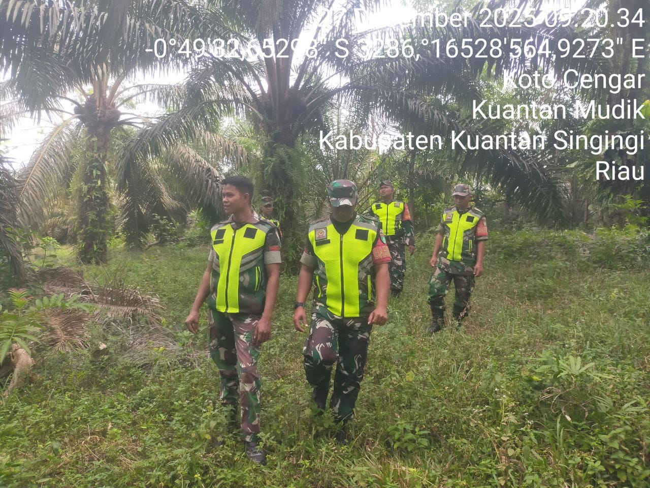 Babinsa Koramil 08/KM Kodim 0302/Inhu Sertu Kadarisman dan rekan Babinsa Lainnya melaksanakan Kegiatan Patroli Kebakaran Hutan Dan Lahan ( Karhutla ) Di wilayah Desa Koto Cengar Kecamatan Kuantan mudik Kabupaten Kuantan Singingi. Sabtu ( 27/12/2025 ).