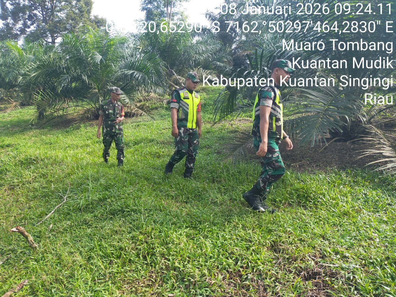 Babinsa Koramil 08/KM Kodim 0302/Inhu Sertu Hendi Saputra dan rekan Babinsa Lainnya melaksanakan Kegiatan Patroli Kebakaran Hutan Dan Lahan ( Karhutla ) Di wilayah Desa Muaro Tombang Kecamatan Kuantan mudik Kabupaten Kuantan Singingi. Kamis (08/01/2026).