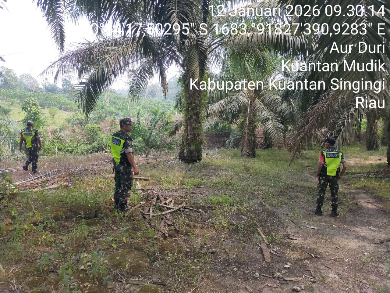 Babinsa Koramil 08/KM Kodim 0302/Inhu Sertu Kadarisman dan rekan Babinsa Lainnya melaksanakan Kegiatan Patroli Kebakaran Hutan Dan Lahan ( Karhutla ) Di wilayah Desa Aur Duri Kecamatan Kuantan mudik Kabupaten Kuantan Singingi. Senin (12/01/2026 ).