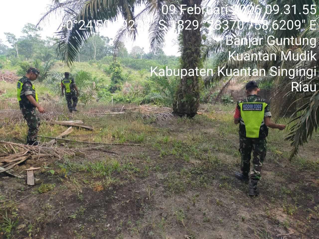 Babinsa Koramil 08/KM Kodim 0302/Inhu Sertu Hendi Saputra dan rekan Babinsa Lainnya melaksanakan Kegiatan Patroli Kebakaran Hutan Dan Lahan ( Karhutla ) Di wilayah Desa Banjar Guntung Kecamatan Kuantan mudik Kabupaten Kuantan Singingi. Senin (09/02/2026 ).