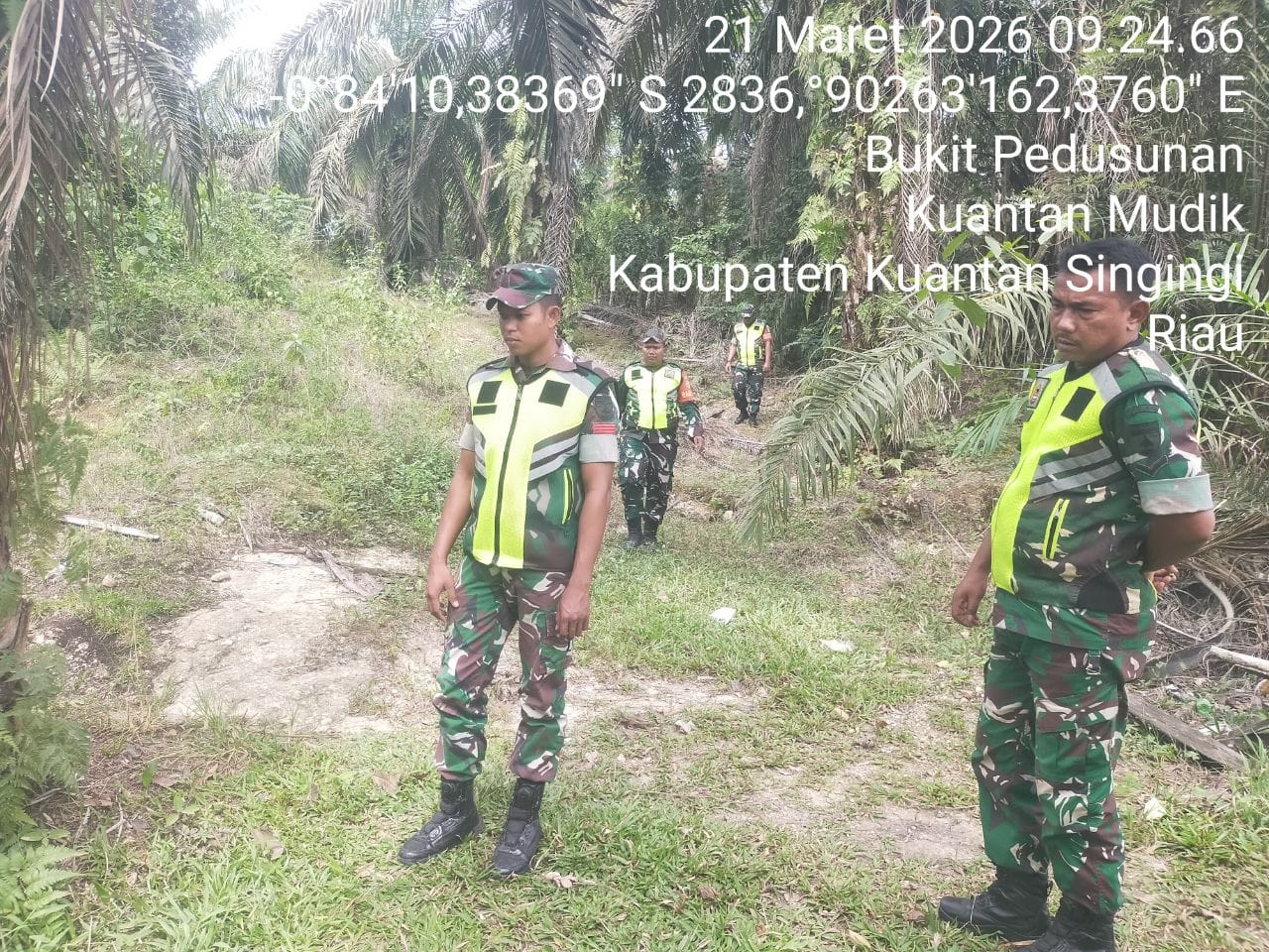 Babinsa Koramil 08/KM Kodim 0302/Inhu Sertu Adi Priyanto dan rekan Babinsa Lainnya melaksanakan Kegiatan Patroli Kebakaran Hutan Dan Lahan ( Karhutla ) Di wilayah Desa Bukit Pedusunan Kecamatan Kuantan mudik Kabupaten Kuantan Singingi. Sabtu (21/03/2026 ).