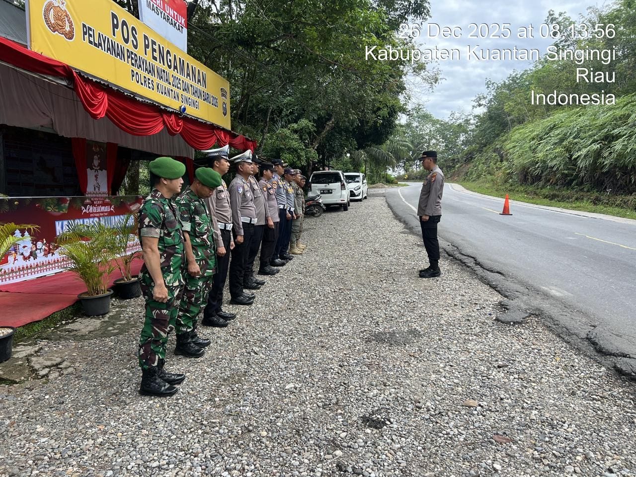 Babinsa Koramil 08/KM Kodim 0302/Inhu Sertu Gusman Dan Sertu Nopin melaksanakan Kegiatan Pam Nataru bersama anggota Polres Kuansing,Satpol pp,Dishub,dan Puskesmas,bertempat di Pos Pam Perbatasan Riau-Sumbar,Desa Kasang Kecamatan Kuantan Mudik Kabupaten kuantan Singingi guna memberikan rasa aman kepada warga pada libur Natal dan Tahun baru 2026. Jumat ( 26/12/2025 ).