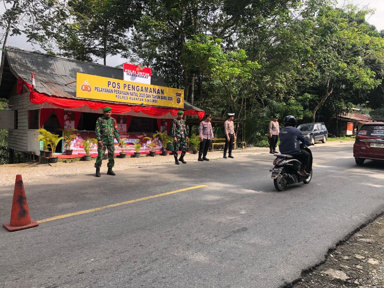 Babinsa Koramil 08/KM Kodim 0302/Inhu Sertu Hendro dan kopda Hendi melaksanakan Kegiatan Pam Nataru bersama anggota Polsek Kuantan Mudik,Satpol pp,Dishub,BPBD dan Puskesmas,bertempat di Pos Pam Perbatasan Riau-Sumbar,Desa Kasang Kecamatan Kuantan Mudik Kabupaten kuantan Singingi guna memberikan rasa aman kepada warga pada libur Natal dan Tahun baru 2026. Selasa ( 23/12/2025 ).