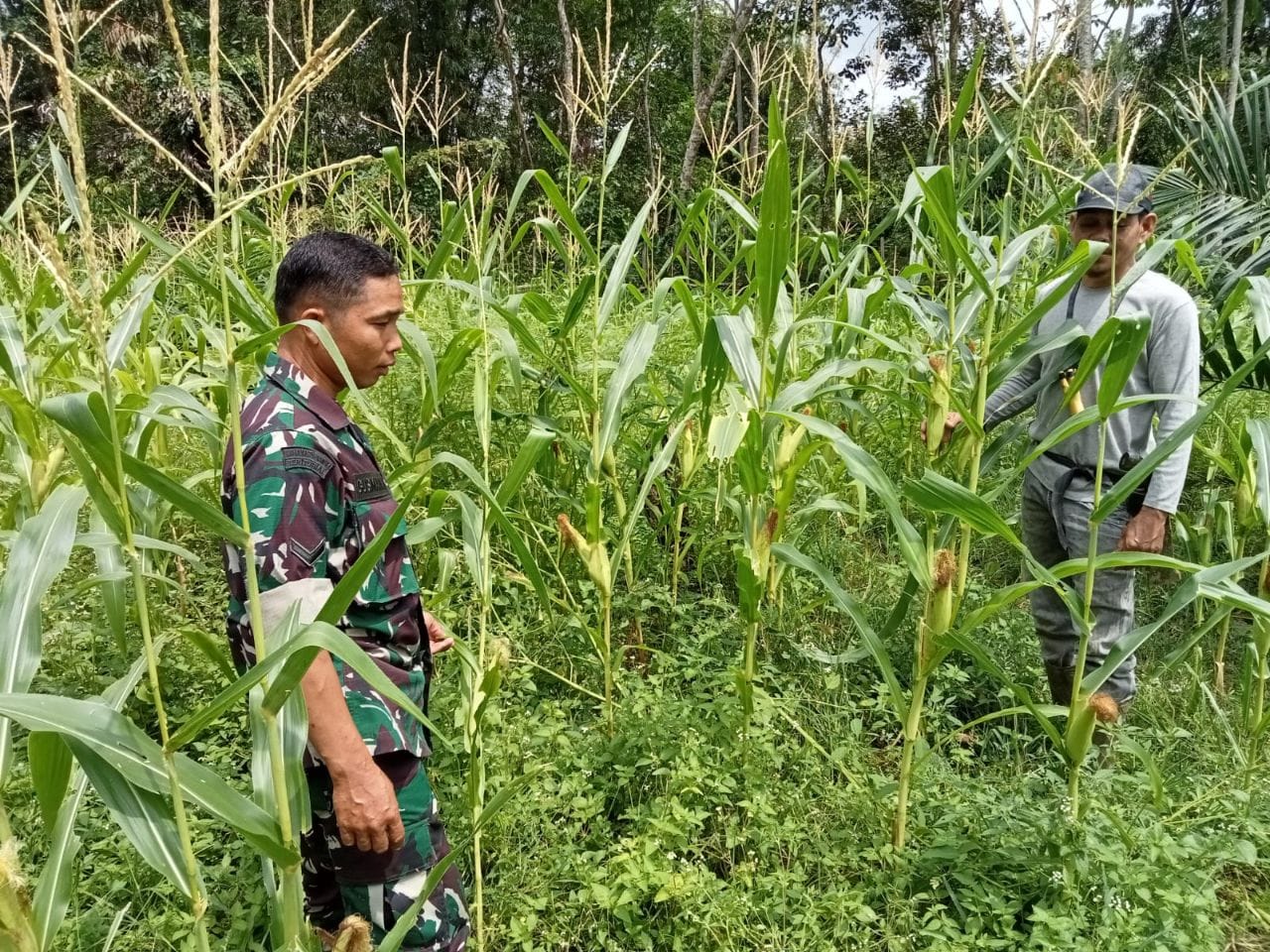 Babinsa Koramil 08/KM Kodim 0302/Inhu Serda Ari Waluyo laksanakan kegiatan pendampingan dalam perawatan tanaman jagung milik petani di desa Siberobah kecamatan Gunung Toar Kabupaten Kuantan Singingi. Kamis ( 20/11/2025 ).