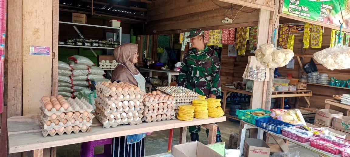 Pastikan Stok dan harga sembako di wilayah binaan aman dan juga stabil,Babinsa Koramil 08/KM Kodim 0302/Inhu Serda Ari Waluyo memonitoring harga kebutuhan pokok dan kebutuhan rumah tangga lainnya di Pasar lubuk ambacang Kecamatan hulu kuantan kabupaten Kuantan Singingi. Rabu ( 29/10/2025 ).