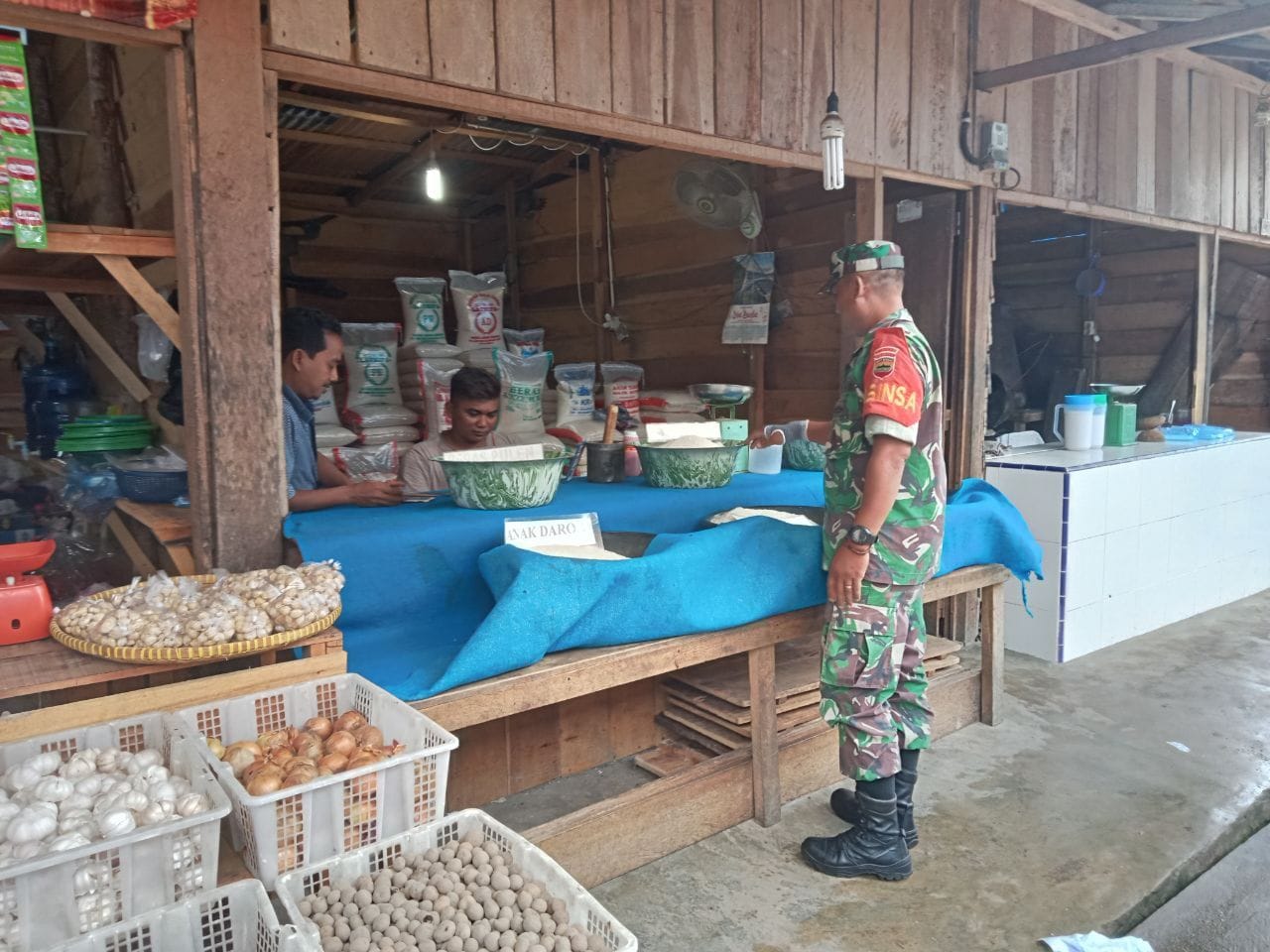 Disamping kegiatan pengecekan harga sembako, Babinsa Serda Ari juga memantau situasi wilayah binaannya dan memberikan himbauan kepada masyarakat untuk tetap waspada dan berhati-hati dalam menjalankan aktivitas.