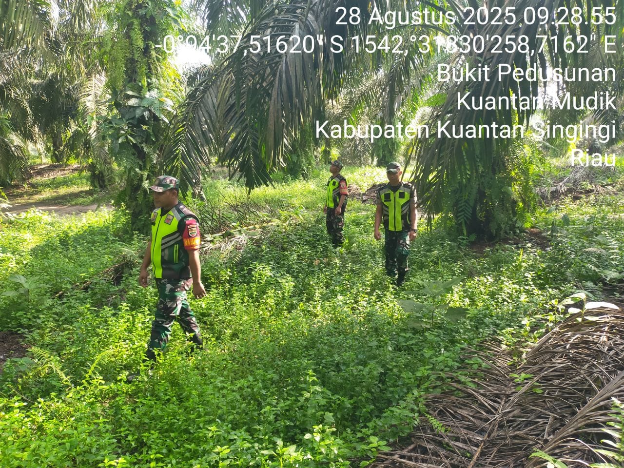 Guna mencegah kebakaran hutan dan lahan,Babinsa Koramil 08/KM Kodim 0302/Inhu Diantaranya Serda Gusman Herianto dan tiga Orang Rekan babinsa lainnya melaksanakan kegiatan patroli Di wilayah Desa Bukit Pedusunan Kecamatan Kuantan Mudik Kabupaten Kuantan Singingi. Kamis ( 28/08/2025 ).