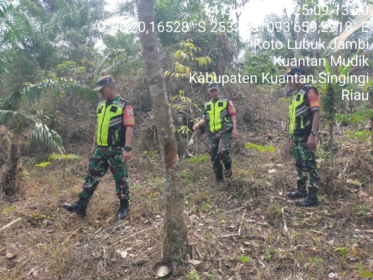 Guna mencegah kebakaran hutan dan lahan,Babinsa Koramil 08/KM Kodim 0302/Inhu Diantaranya Sertu Kadarisman dan tiga Orang Rekan babinsa lainnya melaksanakan kegiatan patroli Di wilayah Desa koto Lubuk jambi Kecamatan Kuantan Mudik Kabupaten Kuantan Singingi. Selasa ( 14/10/2025 ).