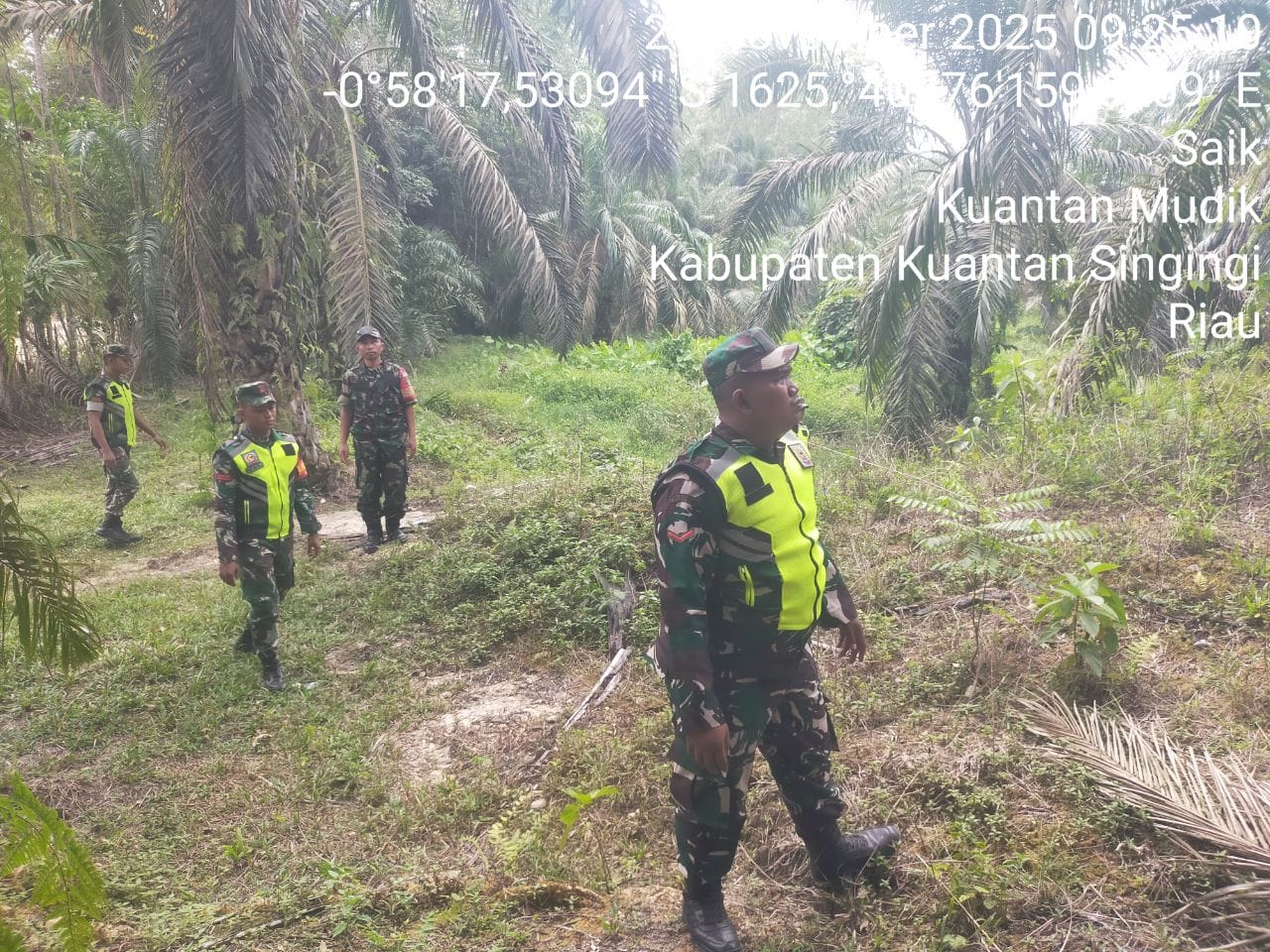 Guna mencegah kebakaran hutan dan lahan,Babinsa Koramil 08/KM Kodim 0302/Inhu Diantaranya Sertu Gusman dan tiga Orang Rekan babinsa lainnya melaksanakan kegiatan patroli Di wilayah Desa Saik Kecamatan Kuantan Mudik Kabupaten Kuantan Singingi. Rabu ( 26/11/2025 ).