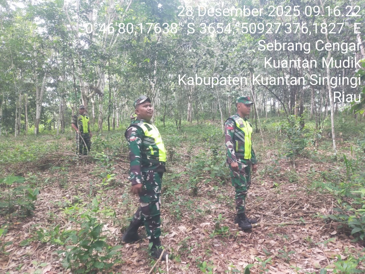 Guna mencegah kebakaran hutan dan lahan,Babinsa Koramil 08/KM Kodim 0302/Inhu Diantaranya Sertu Gusman dan Rekan babinsa lainnya melaksanakan kegiatan patroli Di wilayah Desa Sebrang Cengar Kecamatan Kuantan Mudik Kabupaten Kuantan Singingi. Minggu ( 28/12/2025 ).