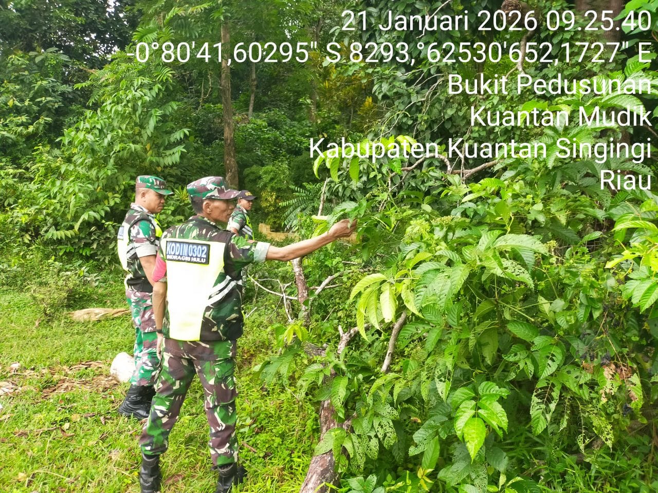 Guna mencegah kebakaran hutan dan lahan,Babinsa Koramil 08/KM Kodim 0302/Inhu Diantaranya Sertu Gusman dan Rekan babinsa lainnya melaksanakan kegiatan patroli Di wilayah Desa Bukit Pedusunan Kecamatan Kuantan Mudik Kabupaten Kuantan Singingi. Rabu ( 21/01/2026 ).