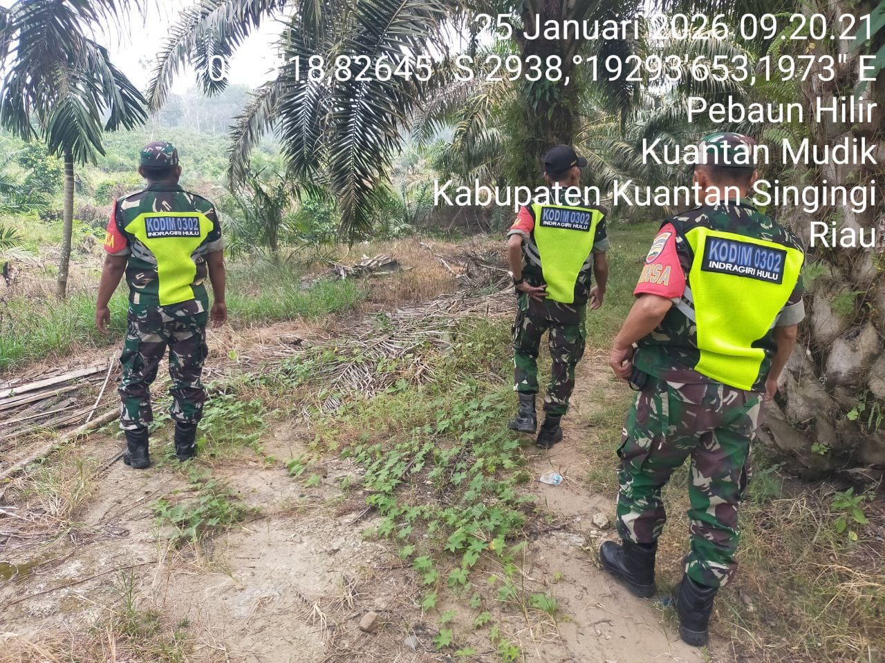 Guna mencegah kebakaran hutan dan lahan,Babinsa Koramil 08/KM Kodim 0302/Inhu Diantaranya Sertu Nopin dan Rekan babinsa lainnya melaksanakan kegiatan patroli Di wilayah Desa Pebaun Hilir Kecamatan Kuantan Mudik Kabupaten Kuantan Singingi. Minggu ( 25/01/2026 ).