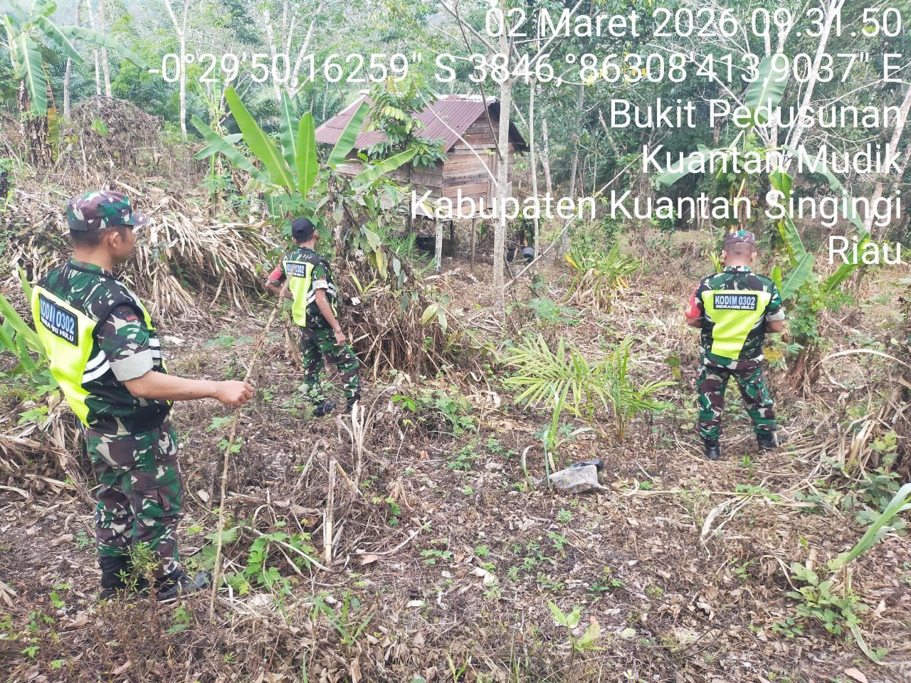 Guna mencegah kebakaran hutan dan lahan,Babinsa Koramil 08/KM Kodim 0302/Inhu Diantaranya Sertu Hendro dan Rekan babinsa lainnya melaksanakan kegiatan patroli Di wilayah Desa Bukit pedusunan Kecamatan Kuantan Mudik Kabupaten Kuantan Singingi. Senin ( 02/03/2026 ).