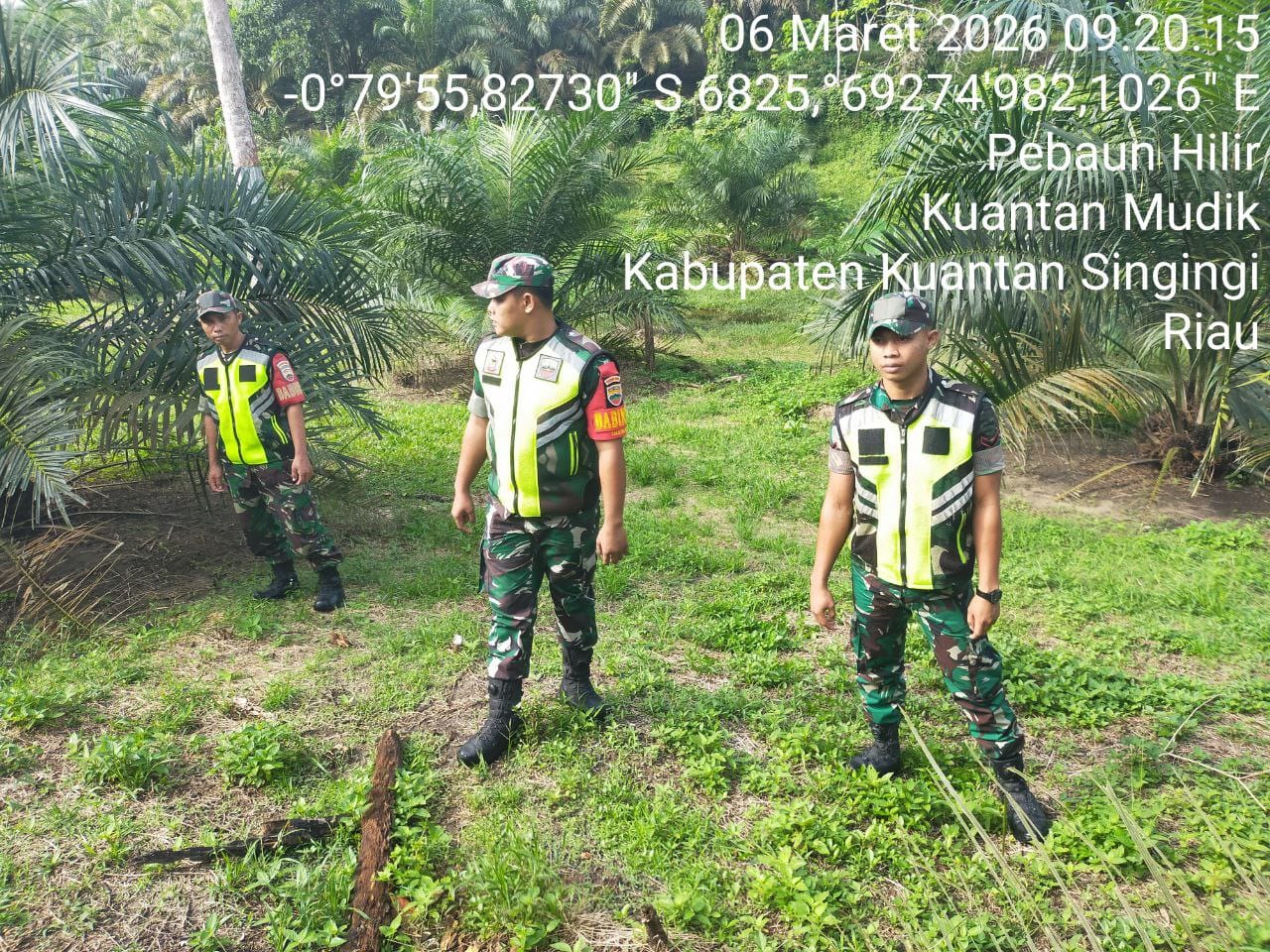 Guna mencegah kebakaran hutan dan lahan,Babinsa Koramil 08/KM Kodim 0302/Inhu Diantaranya Sertu Gusman dan Rekan babinsa lainnya melaksanakan kegiatan patroli Di wilayah Desa Pebaun Hilir Kecamatan Kuantan Mudik Kabupaten Kuantan Singingi. Jumat ( 06/03/2026 ).