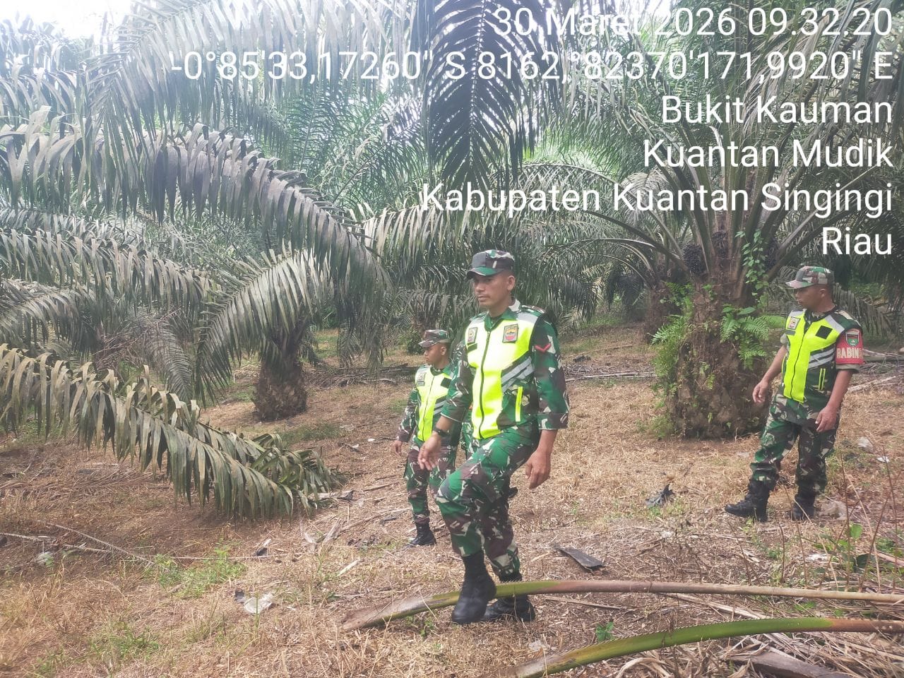Guna mencegah kebakaran hutan dan lahan,Babinsa Koramil 08/KM Kodim 0302/Inhu Diantaranya Sertu Gusman dan Rekan babinsa lainnya melaksanakan kegiatan patroli Di wilayah Desa Bukit Kauman Kecamatan Kuantan Mudik Kabupaten Kuantan Singingi. Senin ( 30/03/2026 ).