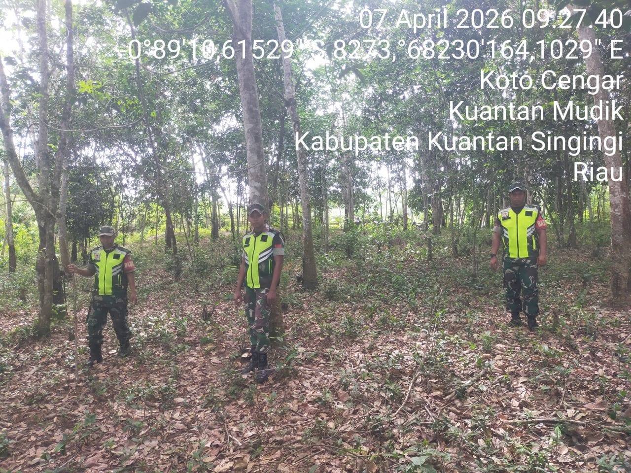 Guna mencegah kebakaran hutan dan lahan,Babinsa Koramil 08/KM Kodim 0302/Inhu Diantaranya Sertu Hendro dan Rekan babinsa lainnya melaksanakan kegiatan patroli Di wilayah Desa Koto Cengar Kecamatan Kuantan Mudik Kabupaten Kuantan Singingi. Selasa ( 07/04/2026 ).