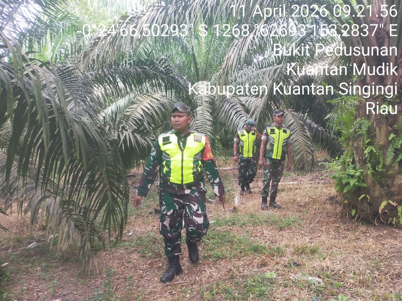 Guna mencegah kebakaran hutan dan lahan,Babinsa Koramil 08/KM Kodim 0302/Inhu Diantaranya Sertu Nopin dan Rekan babinsa lainnya melaksanakan kegiatan patroli Di wilayah Desa Bukit Pedusunan Kecamatan Kuantan Mudik Kabupaten Kuantan Singingi. Sabtu ( 11/04/2026 ).