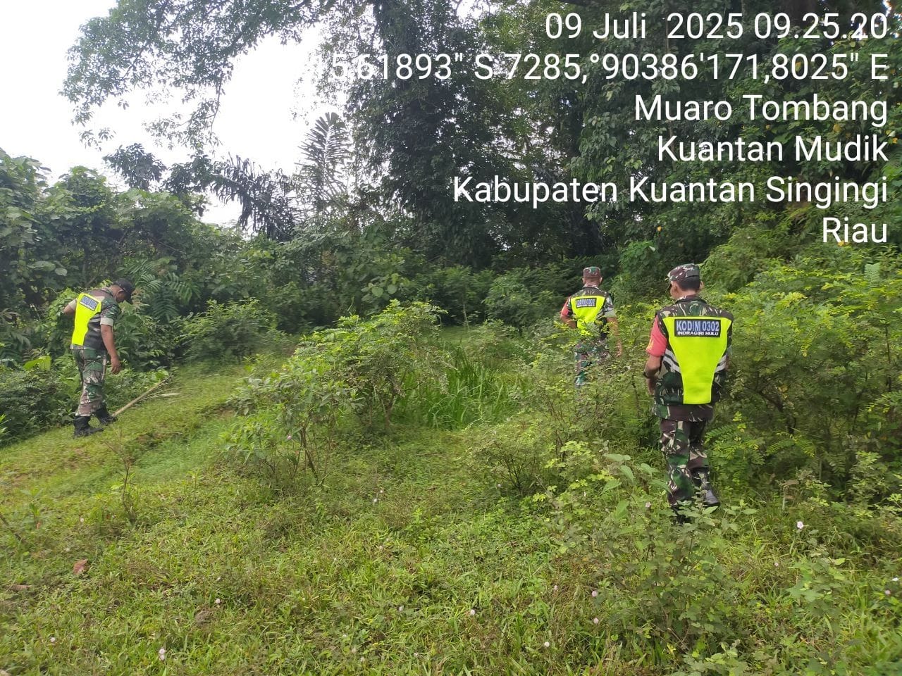 Babinsa Koramil 08/KM Kodim 0302/Inhu selalu rutin melaksanakan patroli dan sosialisasi pencegahan Karhutla kepada warga.Seperti Serda Nopin bersama rekan babinsa lainnya dengan melaksanakan patroli dan sosialisasi Karhutla kepada warga masyarakat Di Desa Muaro Tombang Kecamatan Kuantan Mudik Kabupaten Kuantan Singingi. Rabu ( 09/07/2025 ).