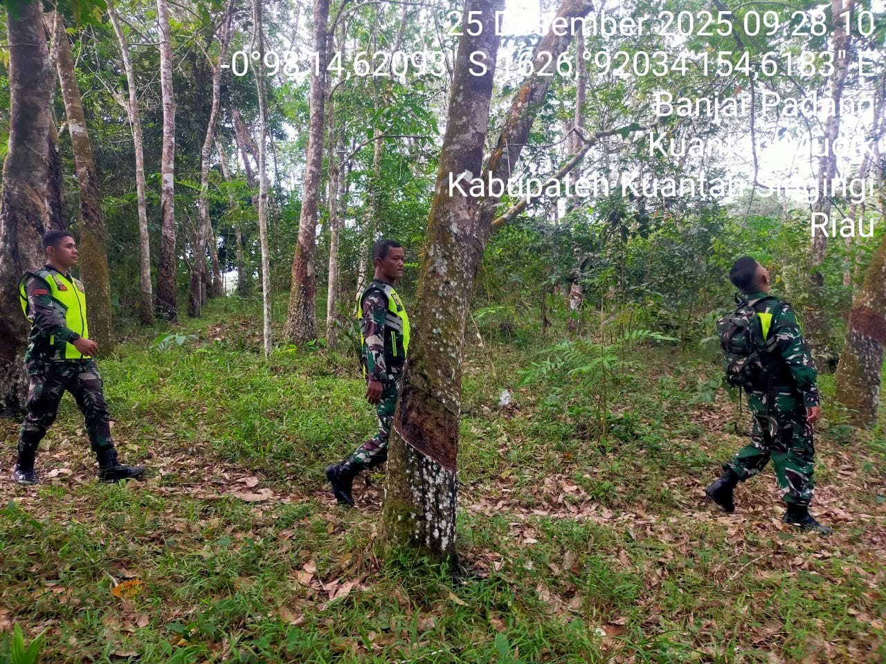 Babinsa Koramil 08/KM Kodim 0302/Inhu selalu rutin melaksanakan patroli dan sosialisasi pencegahan Karhutla kepada warga.Seperti Sertu Hendro bersama rekan babinsa lainnya dengan melaksanakan patroli dan sosialisasi Karhutla kepada warga masyarakat Di Desa Banjar Padang Kecamatan Kuantan Mudik Kabupaten Kuantan Singingi. Kamis ( 25/12/2025 ).