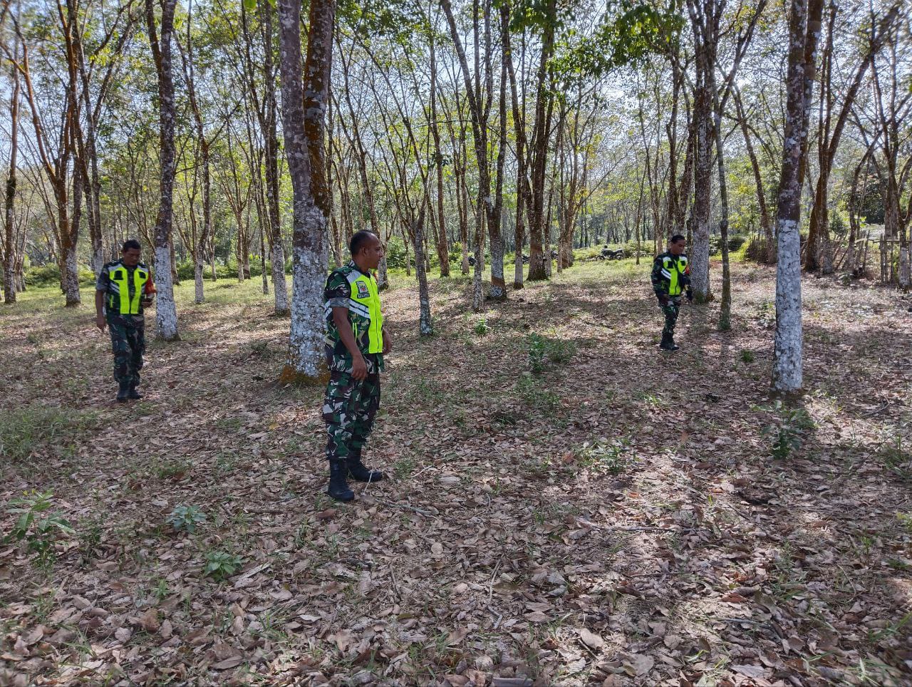 Babinsa Koramil 02/Kuantan Tengah Kodim 0302/Inhu Serda Herry Farwady bersama dengan warga masyarakat menyisir sekitar daerah lahan masyarakat maupun semak belukar di daerah wilayah binaannya.