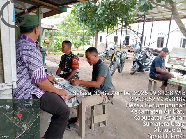 Asahan  |  Dalam rangka untuk memelihara dan menjalin hubungan yang baik Antara Babinsa dengan Masyarakat agar dapat memantau dan mengetahui tentang situasi keamanan di wilayah, dalam rangka untuk memelihara dan menjalin hubungan baik dengan masyarakat, untuk meningkatkan sinergitas antara TNI dan masrakat, keakraban kepada warga binaan merupakan tugas pokok Babinsa. Salah satunya yaitu dengan melakukan komunikasi sosial dalam menciptakan interaksi serta kekompakan antara Babinsa dan warga binaannya. Inilah yang dilakukan oleh para Babinsa diwilayah binaan, dalam kesempatan ini seperti yang dilakukan oleh Personel Bintara Pembina Desa (Babinsa) Koramil 12/Air Batu jajaran Kodim 0208/Asahan Serma P Arif W turun kewilayah binaan untuk melaksanakan kegiatan Komunikasi Sosial (Komsos) bersama dengan warga masyarakat Desa binaan sehingga terjalin Komunikasi yang baik dan Harmonis antara Babinsa dengan warga masyarakat guna menciptakan kebersamaan untuk keutuhan keamanan NKRI, kegiatan Komunikasi Sosial bersama masyarakat membahas tentang perkembangan situasi Kamtibmas, bersama dengan Bapak Hendri, Bapak Mukhsin, Bapak Danuar dan Ibu Sutiyah, kegiatan tersebut yang dilaksanakan bertempat di Dusun I Desa Hessa Perlompongan Kecamatan Air Batu Kabupaten Asahan, Selasa (30/09/2025).