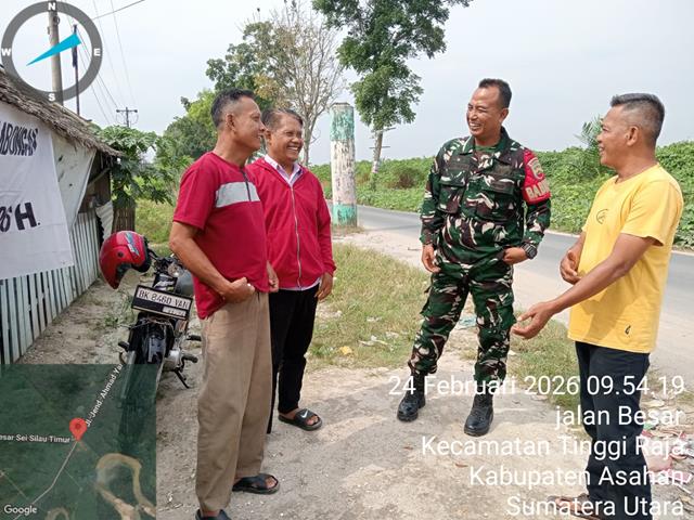 Asahan | Agar hindari mengkonsumsi minuman keras karena sekarang ini sudah banyak kejadian yang kita liat baik dari media cetak maupun elektronik tentang korban dari miras oplosan dan narkoba sudah banyak pula yang menjadi korban akibat mengkonsumsi barang tersebut, dalam kesempatan tersebut seperti hal yang dilakukan oleh Personel Bintara Pembina Desa (Babinsa) Koramil 13/Buntu Pane jajaran Kodim 0208/Asahan Serda Hendro Sucipto turun kewilayah binaan untuk melaksanakan kegiatan Komunikasi Sosial (Komsos) bersama dengan Warga Masyarakat membahas tentang keamanan Lingkungan guna menambah mitra di desa binaan, dengan melaksanakan Komsos dengan mitra karib menghimbau kepada masyarakat menyambut bulan suci Ramadhan ini kita sesama umat yang beragama saling menghargai satu sama lain terutama yang sedang melaksanakan ibadah puasa agar terhindar dari hal2 yang tidak di inginkan, bersama dengan Kadus III Pengajian Bapak Mahyudin Sagala, Bapak Asrun Harahap, Bapak Suparjo dan Bapak Anwar, kegiatan komsos tersebut yang dilaksanakan bertempat di Dusun III Pengajian Desa Tinggi Raja Kecamatan Tinggi Raja Kabupaten Asahan, Selasa (24/02/2026).