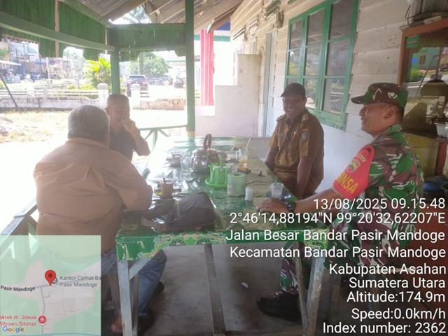 Asahan | Mengingat pada bulan Agustus kita akan menyambut HUT RI ke 80, maka dari itu kita himbau agar warga memasang Bendera merah putih di depan rumah, dalam hal ini Personel Bintara Pembina Desa (Babinsa) Koramil 14/Bandar Pasir Mandoge jajaran Kodim 0208/Asahan Serka L Siringo Ringo turun kewilayah binaan untuk melaksanakan kegiatan Komunikasi Sosial (Komsos) bersama aparat Desa menghimbau agar memasang bendera merah putih serentak didepan rumahnya masing masing selama 1 bulan penuh dari tanggal 01 s/d 31 Agustus 2025 dalam rangka memperingati hari Kemerdekaan RI ke-80, kegiatan bertujuan guna mempererat hubungan komunikasi dan kerjasama yang baik antara Babinsa dengan aparat pemerintah Desa dan masyarakat, bersama dengan Bapak Binsar Manurung, Bapak S Sirait dan Bapak R Sirait, kegiatan tersebut yang dilaksanakan berlokasi di Dusun II Desa Bandar Pasir Mandoge Kecamatan Bandar Pasir Mandoge Kabupaten Asahan, Rabu (13/08/2025).