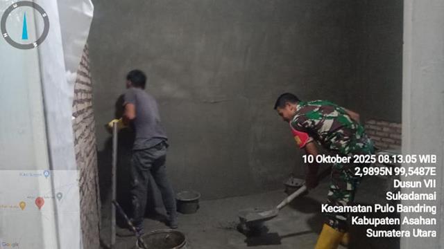 Asahan  |  Sebagai wujud kemanunggalan TNI dan Rakyat, serta tingkatkan kerja sama dan Kekompakan bersama warga masyarakat binaan, dalam kesempatan ini seperti yang dilakukan oleh Personel Bintara Pembina Desa (Babinsa) Koramil 18/Meranti jajaran Kodim 0208/Asahan Serma Jalil turun kewilayah binaan untuk melaksanakan kegiatan membatu perehapan Rumah warga masyarakat binaan lewat Gotong Royong membabtu warga merehap rumah, kegiatan Bakti Sosial di Dusun VII Desa Suka Damai Kecamatan Pulo Bandring, kehadiran Babinsa dalam kegiatan tersebut menjadi bukti nyata kedekatan dan kepedulian TNI, khususnya aparat teritorial, terhadap masyarakat di wilayah binaannya, kegiatan babinsa di wilayah binaan akan terus meningkatkan kepedulian dan dukungan terhadap program penurunan stunting dari pemerintah, Babinsa menunjukkan kepeduliannya terhadap warga binaan dengan turut serta membantu proses rehap rumah milik Bapak Asnan warga, kegiatan tersebut yang dilaksanakan bertempat di Dusun VII Desa Suka Damai Kecamatan Pulo Bandring Kabupaten Asahan, Jumat (10/10/2025).