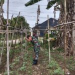 Bantu Rawat Tanaman Kacang Panjang, Babinsa Dampingi Petani di Desa Binaan
