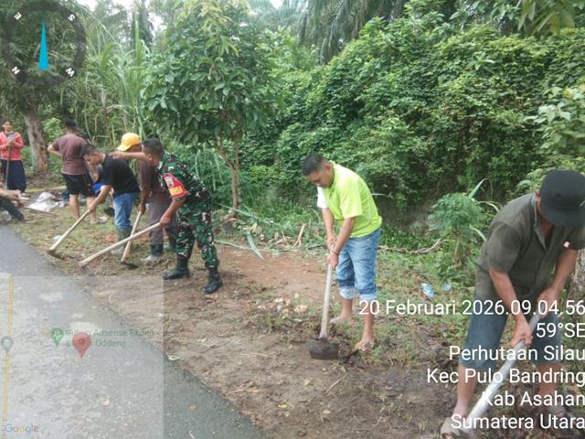 Asahan | Dalam rangka untuk menjaga kebersihan dan keindahan lingkungan serta guna mengantisipasi banjir pada musim hujan seperti sekarang ini, dalam kesempatan tersebut Personel Bintara Pembina Desa (Babinsa) Koramil 18/Meranti jajaran Kodim 0208/Asahan Serka Suparlan turun kewilayah binaan untuk melaksanakan kegiatan Gotong royong bersama dengan masyarakat melaksanakan Gotong Royong, membersihkan saluran parit, kegiatan gotong royong ini bertujuan untuk melancarkan saluran air, gotong royong melaksanakan pembersihan badan yang di tumbuhi rumput rumput liar sehingga bisa merusak jalan dan mengganggu bagi pengguna jalan tersebut, dengan melaksanakan kegiatan Jum’at bersih Gotong Royong pembersihan wilayah binaan, kegiatan tersebut bertujuan dapat mempererat rasa kebersamaan sehingga tercipta hubungan yang baik antara Babinsa dengan warga masyarakat Desa, Babinsa senantiasa mengajak kepada seluruh warga agar untuk meluangkan waktu di bulan Ramadhon ini untuk melaksanakan gotong royong di Desa sehingga lingkungan tetap bersih, rapi dan sehat, bersama dengan Bapak Saimun (Kadus Dusun 3) dan Warga masyarakat Dusun 3, kegiatan tersebut yang dilaksanakan bertempat di Jalan Protokol Desa Perhutaan Silau Kecamatan Pulo Bandring Kabupaten Asahan, Jumat (20/02/2026).