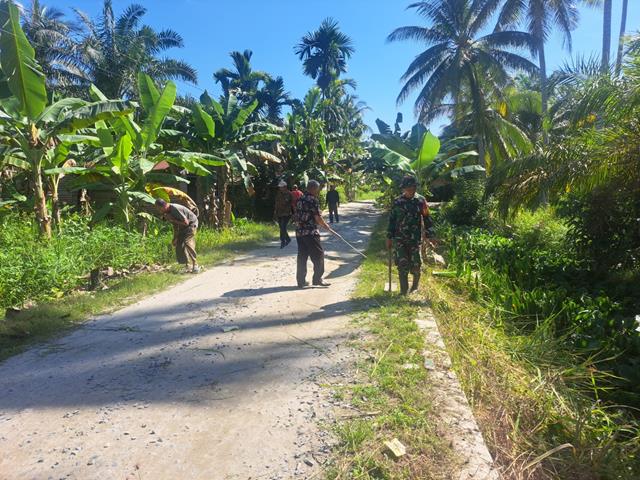 Bersama Warga Personel Koramil 10/SK Kodim 0208/Asahan Gelar Gotong Royong Bersihkan Kiri Kanan Jalan