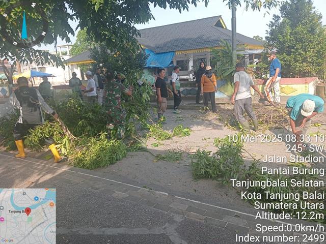 Tanjung Balai  |  Gotong-royong ini sebagai upaya agar masyarakat untuk selalu peduli dengan kondisi lingkungan disekitar tempat tinggalnya, Semoga jalinan kerja sama yang baik selama ini akan semakin kuat dalam mewujudkan kemanunggalan TNI dengan rakyat, dalam kesempatan ini seperti yang dilakukan oleh Personel Bintara Pembina Desa (Babinsa) Koramil 09/Tanjung Balai jajaran Kodim 0208/Asahan Serda Erik S turun kewilayah binaan untuk turut serta melaksanakan kegiatan Gotong-royong bersama warga Desa membersihkan seputaran saluran parit dari sampah dan rumput liar agar aliran air berjalan dengan lancar saat memasuki musim penghujan, giat Bakti TNI dengan Perangkat Kelurahan, Perangkat Kecamatan dan Dinas terkait serta seluruh masyarakat yang berada diseputaran Stadion dan Lapangan Pasir Sultan Abdul Djalil Rahmadsyah Kota Tanjung Balai, dengan tujuan melaksanakan pembersihan secara rutin demi kemajuan tata Kota di Kepemimpinan Walikota yg baru, sehingga kedepannya Kota Tanjung Balai berkarakter dan berwibawa dimata nasional terkhusus ditingkat daerah sendiri, kegiatan tersebut yang dilaksanakan bertempat di Lapangan Sultan Abdul Djalil Rahmadsyah Kel Pantai Burung Kecamatan Tanjungbalai Selatan Kota Tanjung Balai, Minggu (11/05/2025).