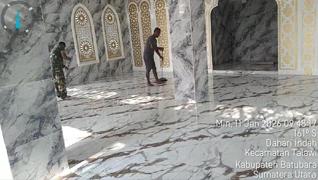 Batu Bara  |  Dalam rangka untuk memelihara dan menjalin hubungan baik dengan komponen masyarakat, untuk meningkatkan Sinergitas antara TNI dengan masyarakat, dengan menyiapkan tempat ibadah, para Babinsa melaksanakan karya bhakti pembersihan lingkungan Rumah Ibadah Gereja atau Mesjid yang ada diwilayah binaan, dalam kesempatan ini seperti yang dilakukan oleh Personel Bintara Pembina Desa (Babinsa) Koramil 04/Talawi jajaran Kodim 0208/Asahan Koptu SG Tampubolon turun kewilayah binaan untuk melaksanakan kegiatan Gotong royong ditempat ibadah, dengan melaksanakan membantu pembersihan sekitaran rumah ibadah Mesjid, dengan melaksanakan Bahkti TNI dengan giat Jumat bersih membantu Najir membersihkan Mesjid, kegiatan membantu pembersihan rumah Ibadah Mesjid Al-Rahman guna memberikan suasana yang bersih dan rapi sehingga tercipta kenyamanan bagi warga yang ingin beribadah, bersama dengan Bapak Sofyan Yusuf (Petugas Mesjid), kegiatan tersebut yang dilaksanakan bertempat di Dusun 2 Desa Dahari Indah Kecamatan Talawi Kabupaten Batu Bara, Minggu (11/01/2026).