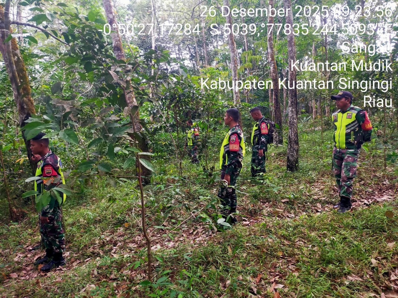 Babinsa Koramil 08/KM Kodim 0302/Inhu Serka Asri Ependi bersama rekan babinsa Lainnya melaksanakan kegiatan patroli pencegahan kebakaran hutan dan lahan (karhutla) Di Desa Sangau kecamatan Kuantan mudik kabupaten Kuantan Singingi. Jumat ( 26/12/2025 ).