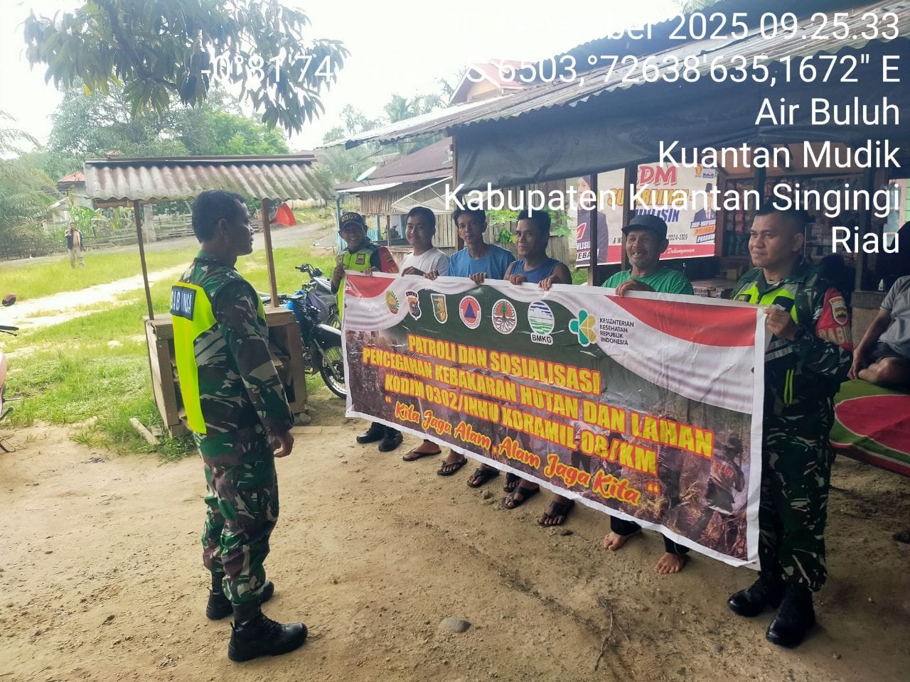 Babinsa Koramil 08/KM Kodim 0302/Inhu Serka Bambang bersama rekan babinsa Lainnya melaksanakan kegiatan patroli pencegahan kebakaran hutan dan lahan (karhutla) Di Desa Air Buluh kecamatan Kuantan mudik kabupaten Kuantan Singingi. Selasa ( 30/12/2025 ).