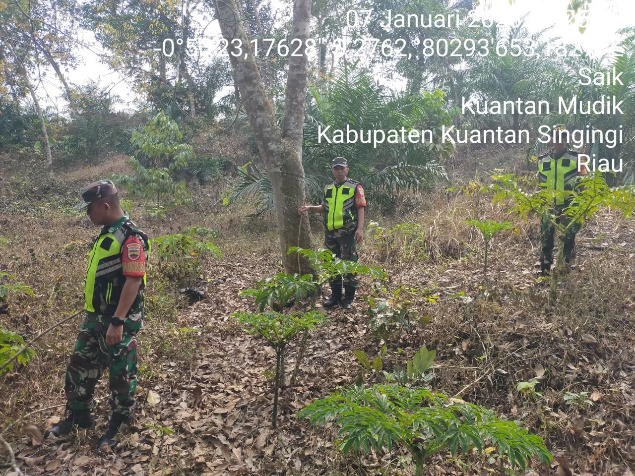 Babinsa Koramil 08/KM Kodim 0302/Inhu Sertu Nopin bersama rekan babinsa Lainnya melaksanakan kegiatan patroli pencegahan kebakaran hutan dan lahan (karhutla) Di Desa Saik kecamatan Kuantan mudik kabupaten Kuantan Singingi. Rabu ( 07/01/2026 ).