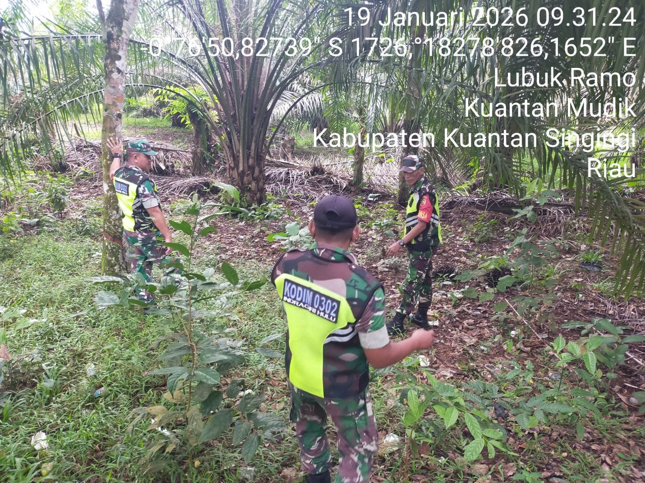 Babinsa Koramil 08/KM Kodim 0302/Inhu Sertu Kadarisman bersama rekan babinsa Lainnya melaksanakan kegiatan patroli pencegahan kebakaran hutan dan lahan (karhutla) Di Desa Lubuk Ramo kecamatan Kuantan mudik kabupaten Kuantan Singingi. Senin ( 19/01/2026 ).