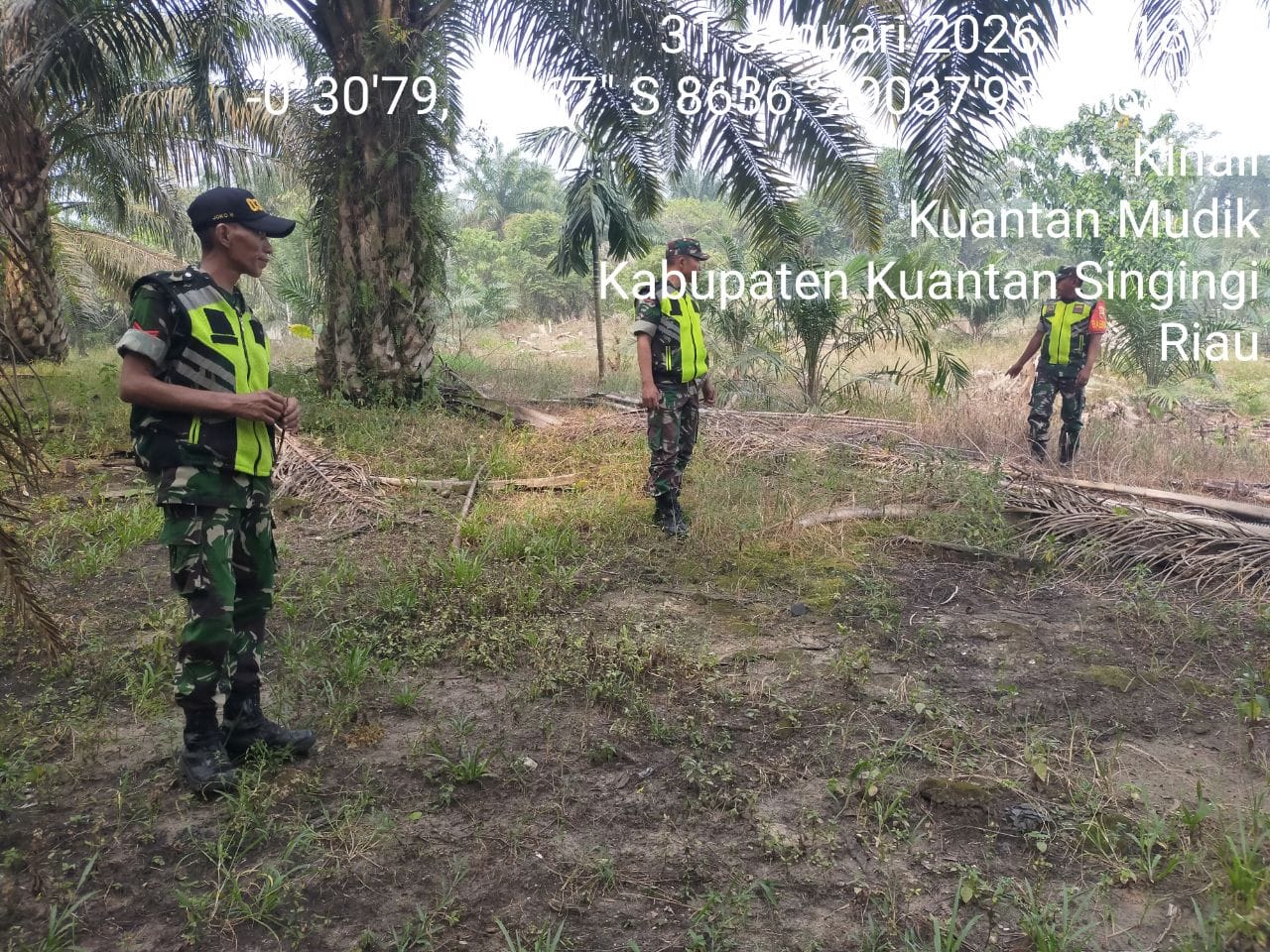 Babinsa Koramil 08/KM Kodim 0302/Inhu Serka Edi Syam bersama rekan babinsa Lainnya melaksanakan kegiatan patroli pencegahan kebakaran hutan dan lahan (karhutla) Di Desa Kinali kecamatan Kuantan mudik kabupaten Kuantan Singingi. Sabtu ( 31/01/2026 ).